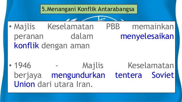 Mempengaruhi Amerika Syarikat dan soviet Union mengehadkan ujian senjata nuklear Peranan mahkamah antarabangsa Menjadi badan timbang tara bagi menyelesaikan isu-isu yang boleh menyebabkan konflik yang lebih serius. Peranan United Kingdom dalam proses pembentukan NATO United Kingdom tidak bersedia menghadapi ancaman kuasa komunis Soviet UnionPenglibatan Amerika Syarikat adalah sinonim kepada NATO adalah Amerika Syarikat dan Amerika Syarikat adalah NATO dan. Bantuan Ekonomi Teknikal dan Biasiswa Penglibatan seterusnya United Kingdom telah menggunakan pengaruhnya yang ada utuk memujuk Amerika Syarikat kanada dan Jepun bagi mewujudkan Rancangan Colombo pada.