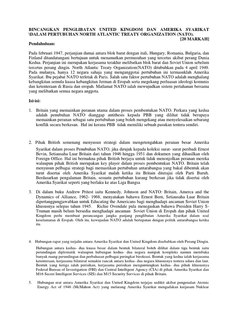 PENGLIBATAN AMERIKA SYARIKAT DAN UNITED KINGDOM DALAM NORTH ATLANTIC TREATY ORGANISATION NATO Pages. Penglibatan dan kerjasama Soviet Union dan Amerika Syarikat dari segi. BINCANGKAN PENGLIBATAN UNITED KINGDOM DAN AMERIKA SYARIKAT DALAM NORTH ATLANTIC TREATY ORGANISATION NATO PADA ABAD KE 20.