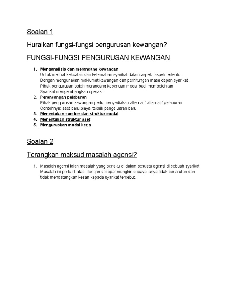 Soalan 1 Huraikan Fungsi Fungsi Pengurusan Kewangan Fungsi Fungsi